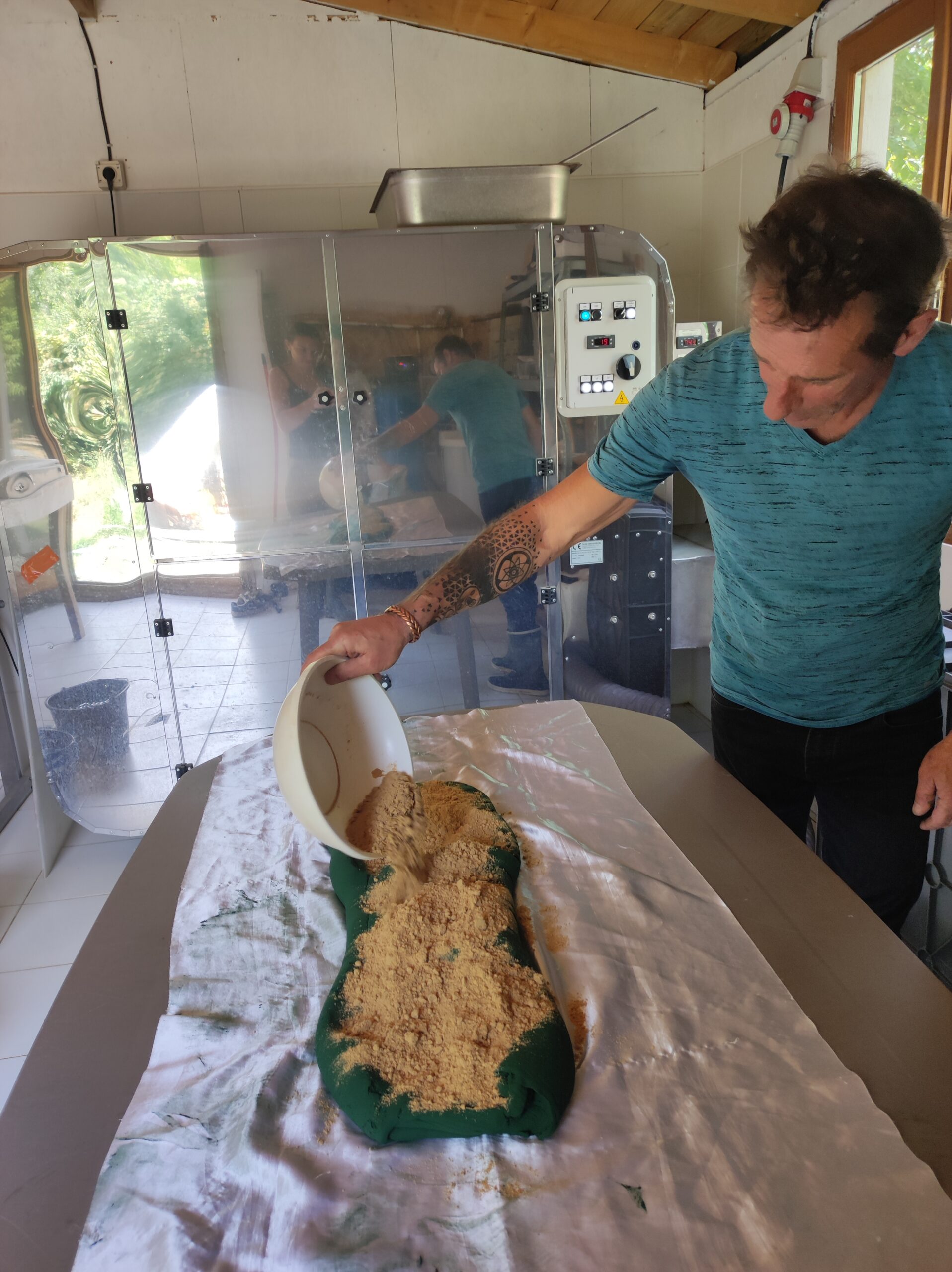 Notre spiruline est séchée grâce à un déshydrateur, ce qui nous permet de maîtriser la température de séchage en dessous de 41°C ainsi que le taux d’humidité résiduel. Ceci nous permet de garder toutes ses valeurs nutritives. Anciennement ingénieur du son, j’ai voulu au sein de la ferme mélanger les sons sacrés (mantras) et la récolte de spiruline afin qu’elle apporte une énergie toute particulière aux personnes qui la consomme. Pour cela, je me suis inspiré des travaux de Masuro Emoto et Joël Sternheimer.